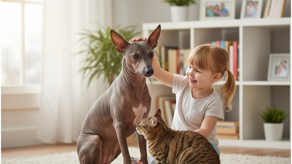 Generalmente, sí. El Xolo es cariñoso con los niños y puede convivir con otras mascotas si se le introduce adecuadamente. La supervisión es importante para evitar malentendidos o juegos bruscos.