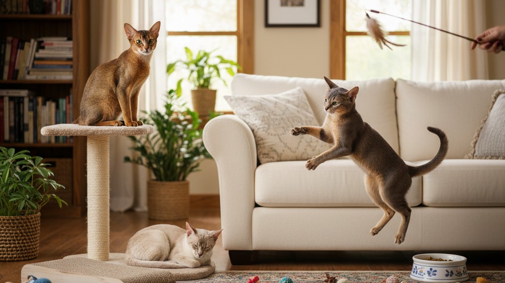 - Ejercicio y estimulación mental: Los Abisinios necesitan actividad diaria para evitar estrés y obesidad.