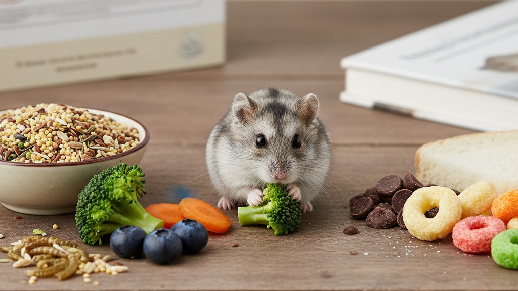 Ofrece alimento comercial de calidad para hámsteres rusos, complementado con pequeñas porciones de frutas, verduras frescas y proteínas ocasionales. Evita alimentos azucarados o procesados.