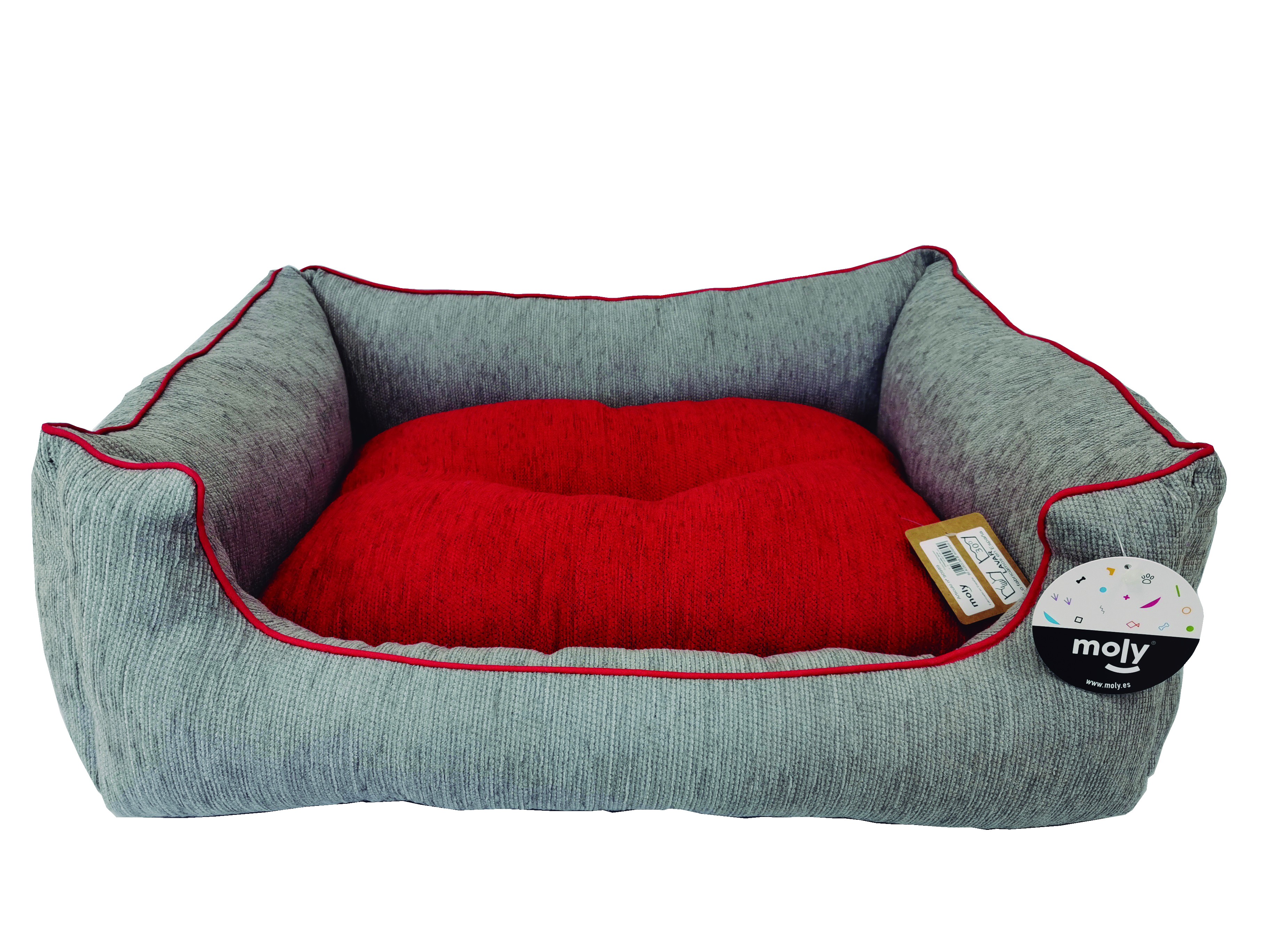 La cuna rectangular de chenilla gris T-3 presenta dimensiones de 75x63x24 cm, diseñada para proporcionar un espacio de descanso adecuado para mascotas de diferentes tamaños. Su composición en chenilla gris y roja, junto con un relleno antiácaros, asegura un entorno cómodo y seguro para los animales, especialmente aquellos con sensibilidades. Este producto es fácil de mantener, ya que el material chenilla permite una limpieza sencilla con un paño húmedo y jabón suave, facilitando su cuidado diario. Ideal para su uso en hogares con mascotas, esta cuna combina funcionalidad y diseño práctico, adaptándose a diversas decoraciones interiores.