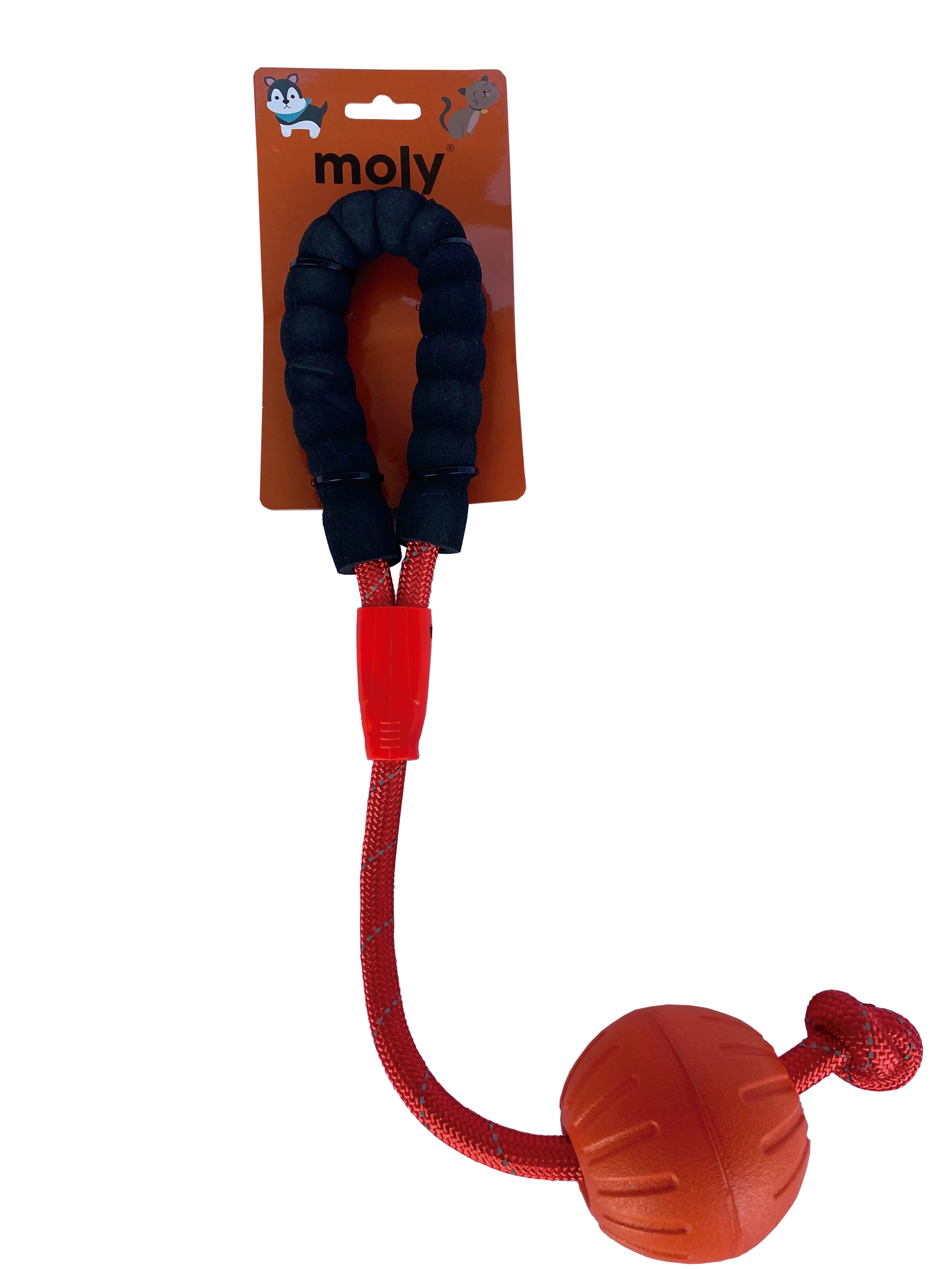 Cuerda con pelota TPR eco de 9*50 cm, diseñada para el juego y ejercicio de perros. Fabricada en material resistente y ecológico.